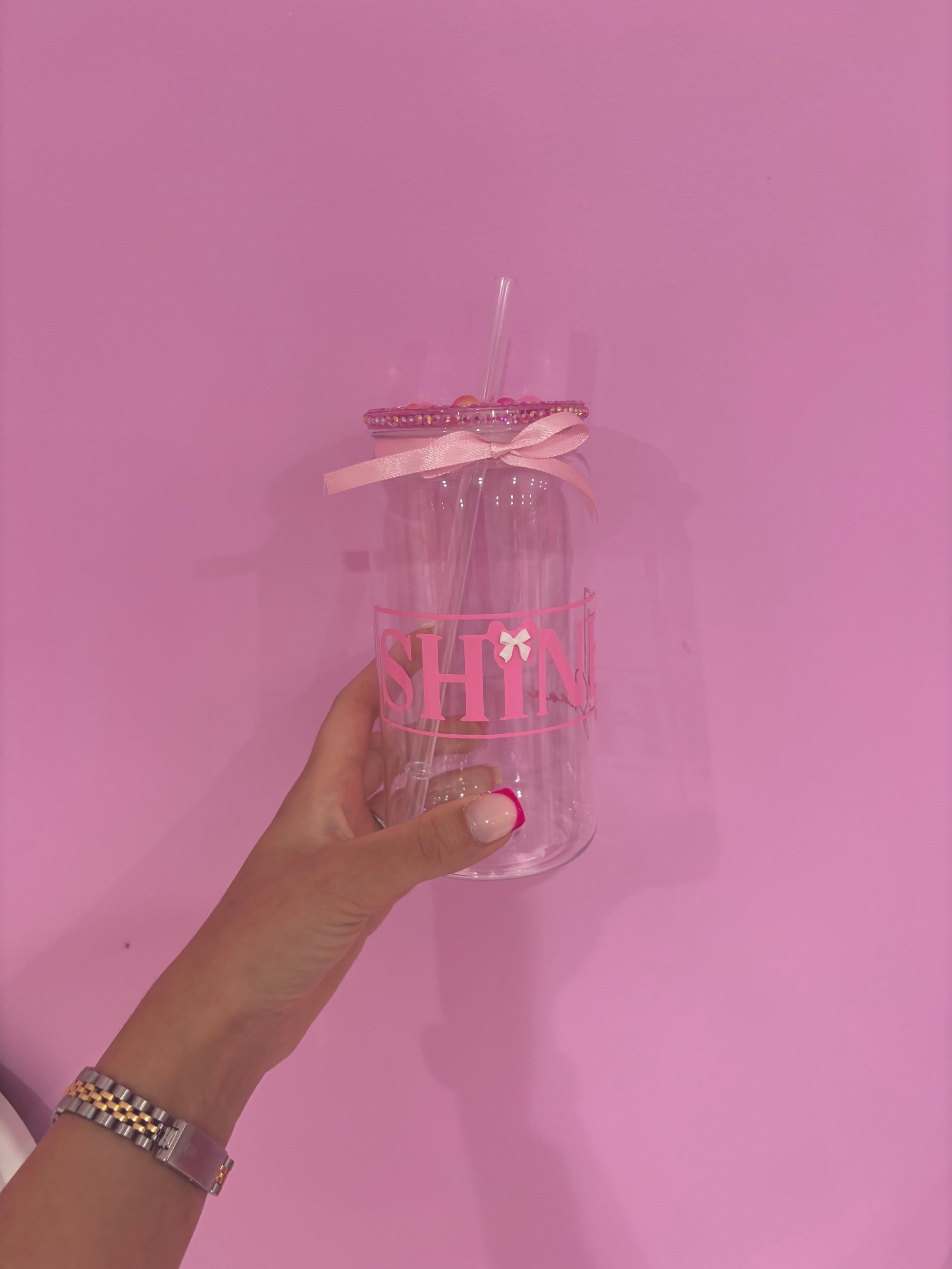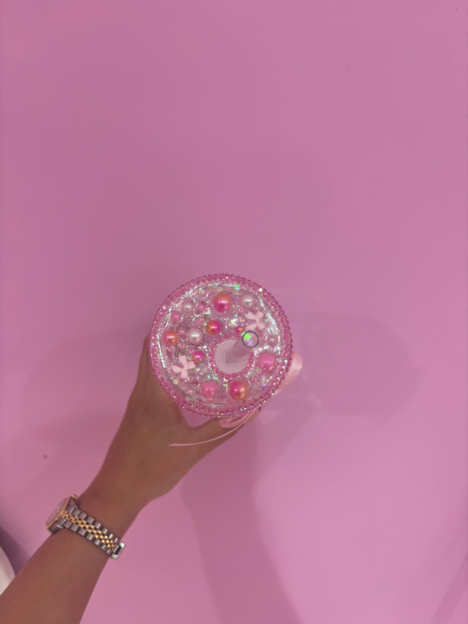 Cup with straw, decorated with pick gems, glitter and accessories, your new must have 🎀🩷