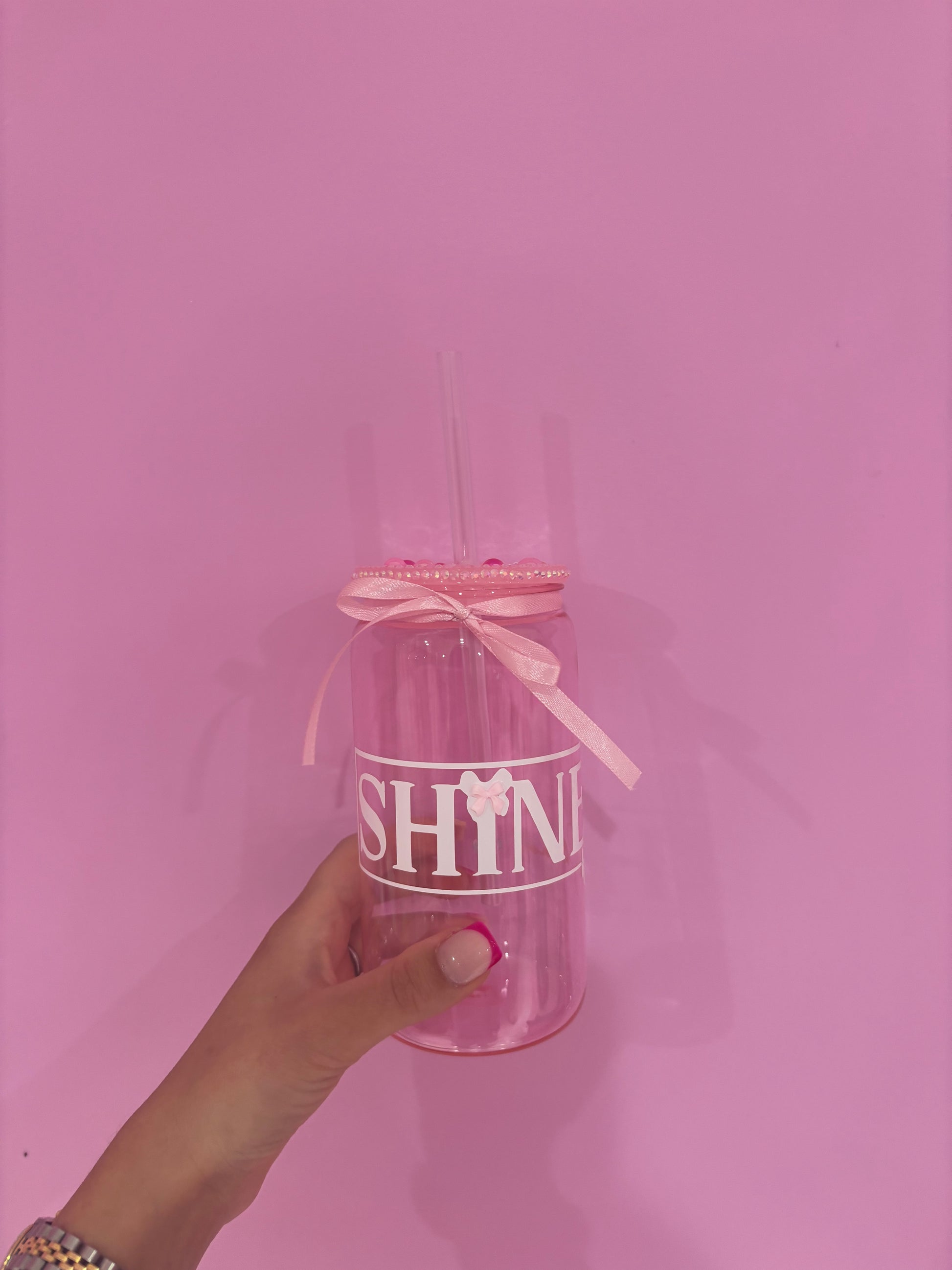 Cup with straw, decorated with pick gems, glitter and accessories, your new must have 🎀🩷