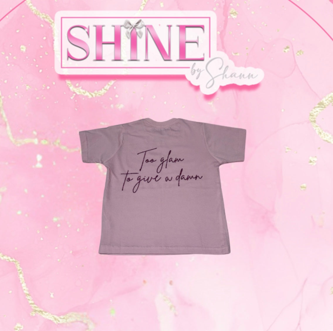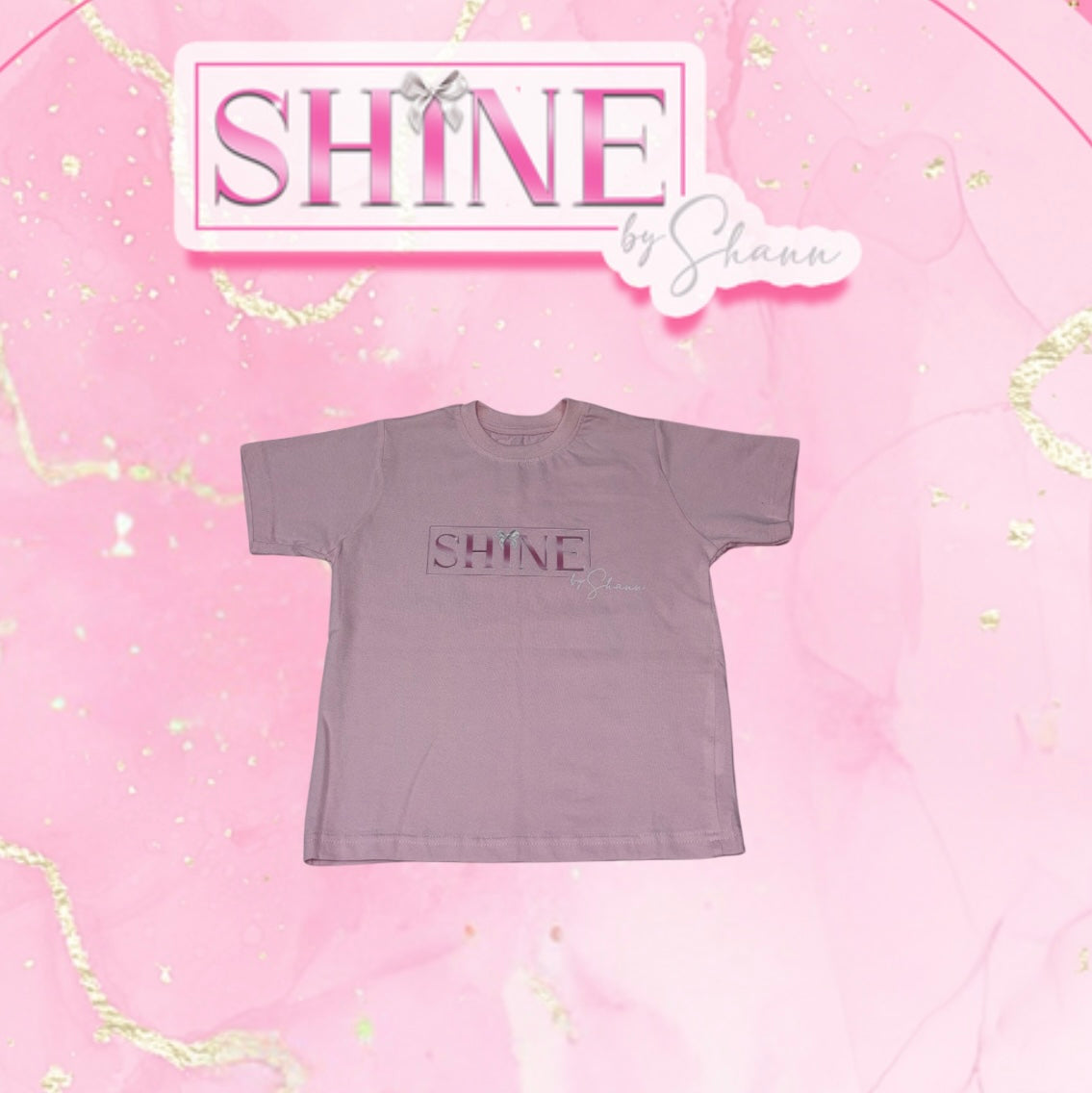 Our luxurious ShineByShann pink Tshirt. Logo on the front with pink glitter slogan on the back. Absolutely stunning and definitely your must have.