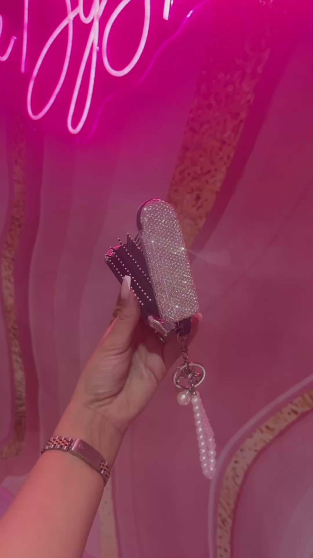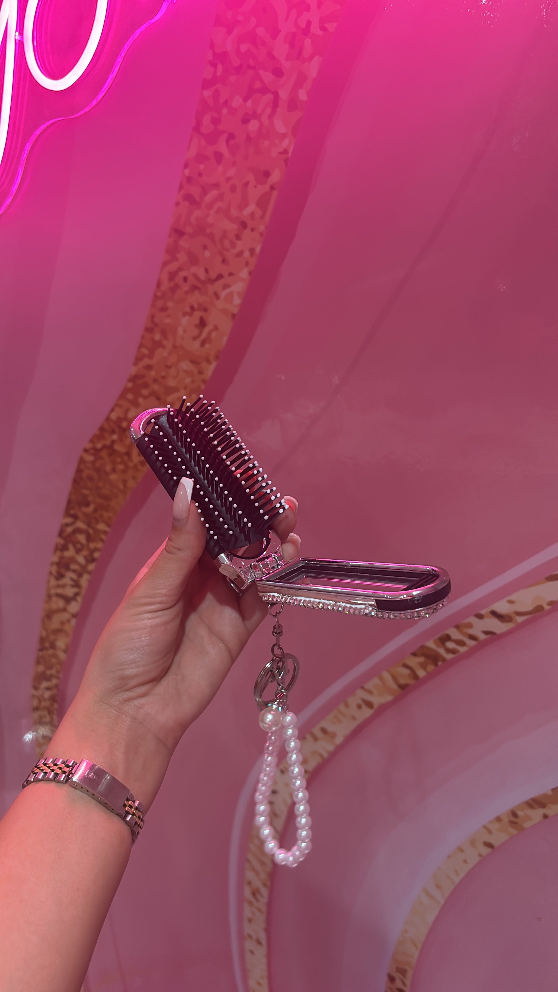 Our pretty silver rhinestone compact hairbrush. Perfect for small bags to carry around in. Making sure you stay glam on nights out or just going to work. Not to mention the key chain charm. Go get it girls!